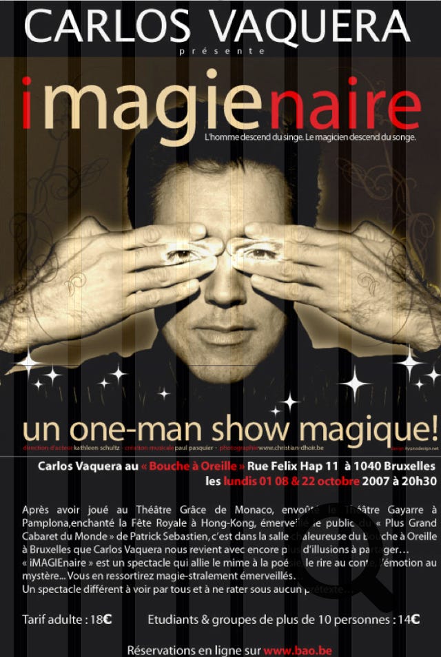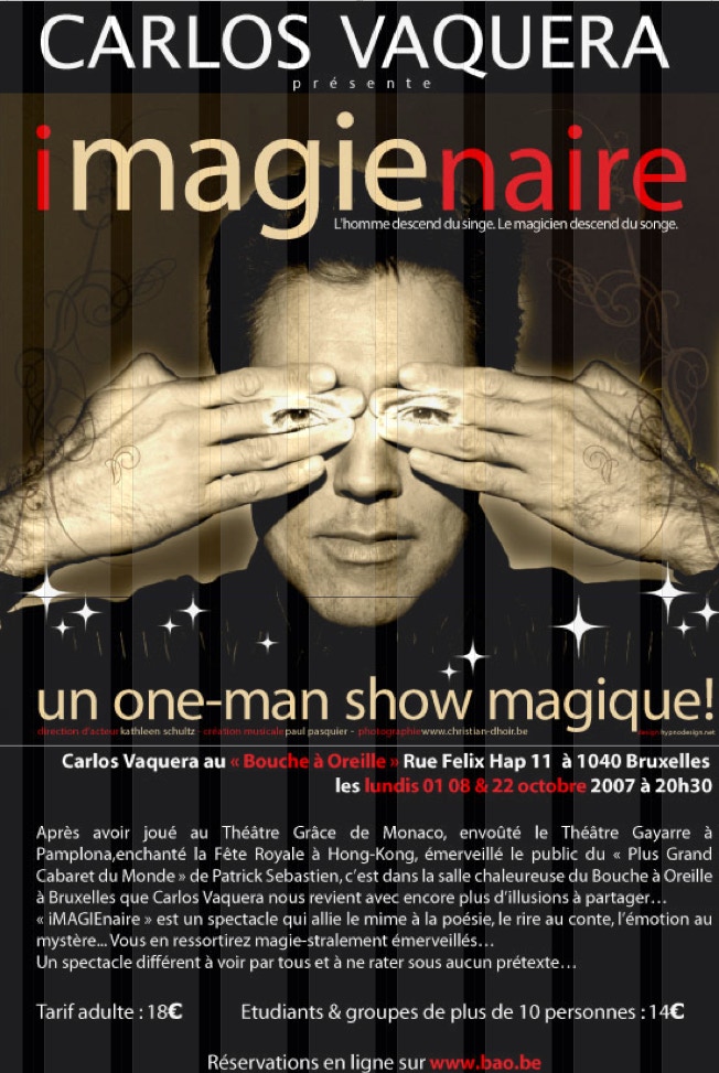 Créateur d’illusions et explorateur de l’esprit, Carlos Vaquera ouvre les portes d’un univers où la frontière entre le réel et l’imaginaire s’efface. Mentaliste au talent reconnu, auteur et conférencier inspirant, il captive son public en transformant chaque instant en une expérience troublante et mémorable. Formateur passionné et comédien habité, il fait de la scène un espace de réflexion, d’émerveillement et de partage, où les émotions se mêlent à la pensée. Entrer dans son univers, c’est accepter une invitation au voyage, là où l’invisible se révèle et où l’impossible prend vie.
